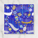 Des dreidels colorés, des menorahs et des étoiles sur un riche arrière - plan bleu.