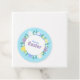 Happy Easter favor tag decorated with flowers and eggs on blue background