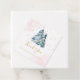 Des étiquettes douces rose pastel et or pour l'anniversaire d'hiver avec une forêt de pins d'aquarelle et des flocons de neige. Avec élégante calligraphie manuscrite.