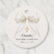 Complete your First Holy Communion celebration with these elegant round favor tags featuring a luxurious ivory bow with delicate pearl details and a subtle gold cross.