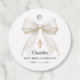 Complete your First Holy Communion celebration with these elegant round favor tags featuring a luxurious ivory bow with delicate pearl details and a subtle gold cross.
