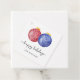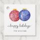 "Joyeuses fêtes" marque de service de Noël avec des ornements de Noël peints à la main en rouge et bleu. Balise de faveur de Noël simple et élégante. Image aquarelle de Kristine Lee. Pour en savoir plus, visitez le site www.kristineleedesigns.com
