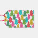 Ces étiquettes-cadeaux amusantes et colorées présentent la lecture de typographie moderne, "MERRY CHRISTMAS", conçue avec du papier-mouchoir superposé dans des couleurs audacieuses de rouge, vert, jaune doré, citron vert, aqua et rose magenta. Le dos contient un motif assorti d'arbres de Noël qui se chevauchent.