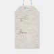 Une étiquette cadeau festive avec lettrage à la main et fil d'aquarelle sur arrière - plan imitation écorce de bouleau. Copyright The Holiday Store, tous droits réservés.