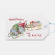Des étiquettes cadeau de Noël personnalisées pour les enfants avec des formulations modifiables et des gnomes de Noël illustration.Cette conception d'aquarelle mignonne a deux gnomes qui ont un plaisir extraordinaire sur leur traîneau tirant un traîneau rempli de cadeaux. Il a une typographie fantaisiste et est écrit avec "Livraison spéciale du Pôle Nord, À : [nom(s) des enfants], DE : Père Noël". Vous pouvez changer le pôle Nord en Laponie par exemple et ajouter n'importe quel nom à/de noms que vous souhaitez ou laisser en blanc pour écrire à la main à votre arrivée.