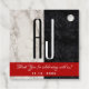 Calligraphie simple et moderne, marbre rouge noir et blanc mariage merci faveur tag avec géant monogramme initiales de mariée et mariée.