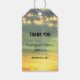 lampes à cordes palmiers coucher de soleil plage mariage merci étiquettes