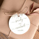 Ce design comprend une étiquette de faveur de mariage, un script de calligraphie simple, minimaliste, avec une élégante, classique, verte sauge et feuillage.