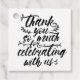 Un mariage blanc vous remercie de faveur tag avec "merci beaucoup de célébrer avec nous" écrit dans un charmant script de brosse avec des petits feuilles de doodles et des brindilles. Ajoutez vos noms et votre date de mariage au verso.
