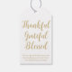 Merci Grateful Bienheureux script personnalisé moderne faux or script Thanksgiving cadeau de vacances Favor Tags. Options entièrement personnalisables de texte en faux or, kraft ou papier blanc.