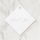 Élégante et élégante marque de mariage. Cette étiquette cadeau de faveur "Merci" comporte un texte bleu clair simple et minimal à l'avant et des noms de couple à l'arrière dans un ensemble de polices contemporaines contre un arrière - plan blanc pour les deux côtés.