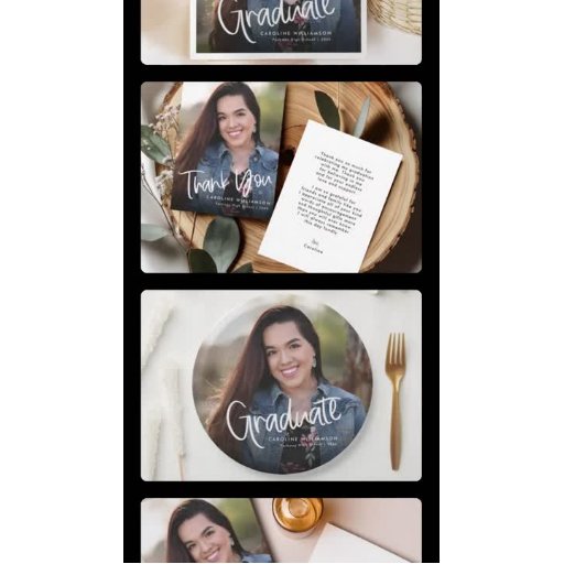 Un script décontracté tendance de remise de diplômes photo merci étiquette cadeau. La photo est à des fins de placement seulement et peut être remplacée par n'importe quelle photo de votre choix. Customisez le message au verso de l'étiquette cadeau pour créer un message de remerciement personnel pour vos invités de remise de diplômes.