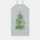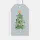 Ces étiquettes modernes ultra minimalistes de Noël et cadeaux de vacances du milieu du siècle sont contemporaines, personnalisables et simplement adorables. Ce design présente une élégante typographie cursive indiquant "Joyeux Noël" avec un composant de nom de famille personnalisé et un joli arbre de Noël aquarelle.