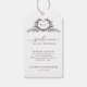 This elegant wedding gift tag features refined calligraphy and modern typography in a clean, minimalist layout. The delicate botanical crest monogram adds a timeless romantic touch while maintaining a chic and sophisticated style. Perfect for welcome bags, favors, or guest gifts, this tag adds a thoughtful and stylish finishing detail to your wedding presentation. Ideal for modern, classic, rustic, or formal celebrations, it complements your coordinated stationery suite beautifully.