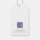 Elégant Moderne Chic Monogram Navy & White QR Code Balises de suspension d'entreprise. Airy design moderne minimaliste dispose de peinture marine branchée avec monogramme de typographie blanche moderne et code QR en bleu marine royal profond sur blanc ivoire. Customisez avec votre texte et ajoutez votre URL au champ de génération de code QR. Toutes les polices, le texte et les couleurs peuvent être customisés pour répondre à vos besoins. Nous vous invitations à visiter notre magasin Zazzle, GJ Design Co, pour des produits assortis et plus encore.