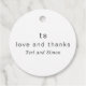 Les étiquettes de faveur de mariage moderne avec un design simple mais élégant avec le message "amour et merci" ainsi que votre monogramme et vos noms.