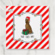 Joyeux Noël Santa Claus Irish Setter - Drôle, souriant, dessin animé Irish Setter chien portant un chapeau de Père Noël et assis avec un cadeau de Noël avec un arc et des cloches. HO, oh ! Copyright © Angi Laframboise. Un chien de Noël mignon reproduit des cadeaux pour les amoureux de les chiens.