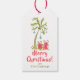 Étiquettes-cadeau Noël tropical avec palmier présente le littoral