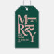 Budget Moderne minimaliste traditionnel rétro typographie graphique vintage vert et rose joyeux vacances de Noël merci tag. Une partie d'une collection de vacances audacieuse et amusante.