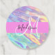 Nom monogramme irisé holographique de la pêche à la fille, violet et aqua et balises initiales de faveur. Votre nom personnalisé et votre monogramme sont écrits dans un élégant script écrit à la main avec un arrière - plan rose. Un cadeau d'anniversaire ou de Noël parfait !