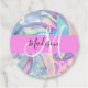 Nom monogramme irisé holographique rose, aqua et turquoise et acronyme et marques initiales de faveur. Votre nom personnalisé et votre monogramme sont écrits dans un élégant script écrit à la main avec un arrière - plan rose. Un cadeau d'anniversaire ou de Noël parfait !