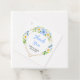 Ce mariage magnifique et élégant merci faveur tag caractéristiques aquarelle bleu oublier-moi-nots, marguerites et feuillage sur un cadre géométrique or. Le texte combine écriture manuscrite et polices serif pour un look élégant et moderne. Il est parfait pour un mariage rustique de printemps ou d'été.