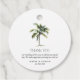 Un mariage tropical minimal vous remercie de favoriser les étiquettes comportant une illustration de palmier à aquarelle unique sur un arrière - plan blanc classique. Personnalisez le message de remerciement, les noms et la date à l'aide du simple modèle de police serif.