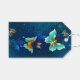 Étiquettes-cadeau Papillons d'or sur un Arrière - plan bleu