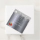 Un faux arrière - plan métallique à l'allure argentée avec parties scintillant faux argent goutte à goutte, un peu de bling et de luxe pour vos faveurs de Noël. Le vieux traîneau rouge vintage du Père Noël rempli de cadeaux de décoration. Avec le texte : Fête de Vacances écrite avec un script de style moderne écrit à la main. Modèle pour Votre nom de famille et un an, des lettres blanches. Retour : espace pour écrire à la main.