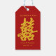 Ce moderne Double Happiness Tags cadeau se compose du caractère "double bonheur" en chinois en parties scintillant or et noms et date personnalisables.