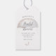 Une jolie douche nuptiale féminine, merci préférez le tag avec des parties scintillant roses en or confetti saupoudrées tombant sur un parapluie gris clair avec la mariée pour être le nom au-dessus du titre de l'événement et message de remerciement ci-dessous.