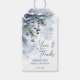 Neige en amour modèle douche nuptiale d'hiver merci préférez les étiquettes cadeaux, aquarelle bleu pâle baies d'hiver sur branches de pin enneigé flocons de neige merci les étiquettes cadeaux