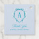 Remerciez vos invitées de la réception de mariage avec cette étiquette de faveur personnalisée. Ce dessin réalisé à la main présente un blason floral bleu et blanc avec un monogramme initial et une écriture élégante. Ce design est parfait pour une réception de mariage "Quelque chose de bleu". Les délicates fleurs blanches rappellent les hortensias et le souffle de bébé. Ce blason monogramme élégant et intemporel est sûr de donner le ton parfait pour votre réception de mariage. Vous pouvez trouver des modèles coordonnés dans ma boutique Zazzle, Ashlee Townsend Design.