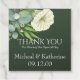 Étiquettes de remerciement et/ou de bienvenue personnalisées pour mariage. Fleurs peintes à l'aquarelle blanche inspirées de l'automne et de l'hiver sur un fond Vert émeraude.
