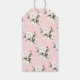 De délicates roses blanches en haut et en bas de cette élégante étiquette-cadeau de réception de mariage rose, avec des détails de personnalisation en typographie grise. Le verso de l'étiquette-cadeau présente un motif répétitif de la même composition florale également sur fond rose. Idéal pour les prix, les faveurs et plus encore.