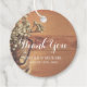 Tags de mariage rustique personnalisées avec une image d'un pot en maçon plein de fleurs d'haleine blanche pour bébé sur un arrière - plan en bois.