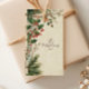 Un décor festif de Noël avec des feuilles saints de style vintage, des baies rouges vitrées et une végétation de pins contre un arrière - plan parchemin rustique. Un look de vacances boisé intemporel à la fois confortable et élégant.