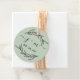 Marque de faveur verte rustique avec feuilles de laurier, initiales de script et date moderne.