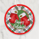 Père Noël mittens rouge sur un classique rouge, vert, blanc et bleu tartan motif arrière - plan et classique Happy Holidays citent le texte. Avec place pour customiser ou personnaliser avec nom de famille, salutation, ou souhait de votre choix.