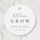 Conçu pour correspondre à nos invitations de mariage en ligne. Une belle conception typographique à l'atmosphère minimaliste, avec "laissez grandir l'amour" et deux lignes de texte personnalisé dans un script manuscrit moderne et des lettres serif classiques en noir et blanc. Parfait pour l'attachement aux paquets de semences, plantes ou succulents.
