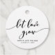 Des étiquettes de faveur de mariage avec les mots "Let Love Grow" dans un script de relaxation cursive en noir contre un arrière - plan blanc. Personnalisez-le en remplaçant le texte de l'espace réservé. Pour plus d'options comme changer la police et sa taille/couleur ou l'espacement entre les lettres cliquez sur le bouton "Personnaliser". *Veuillez noter que le filigrane Zazzle qui apparaît dans l'aperçu du zoom n'apparaîtra PAS sur le produit imprimé final. © Bois de rose et agrumes