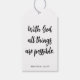 “With God all things are possible.” — Matthew 19:26. Create beautiful tags with faith-based inspirational sayings for your graduation party centerpieces.