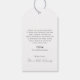Balise de produit classique en noir et blanc avec une mise en page simple avec votre monogramme à l'intérieur d'une couronne / crête avec votre nom dans un élégant script / calligraphie. Ci-dessous est un modèle pour des détails sur votre produit avec l'exemple montré pour une bougie faite à la main. Le dos a votre message dans une police serif traditionnelle avec des icônes de médias sociaux. Un design féminin et féminin qui est parfait pour toute entreprise avec des produits faits à la main.