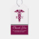 Balises cadeau Merci avec un symbole de caducée rouge élégant avec les lettres R N de chaque côté. Bourgogne - bordure magenta avec une bande noire le long du fond. Parfait pour une infirmière.