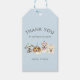 Balise cadeau mignonne pour la fête d'anniversaire du chiot de votre enfant. Illustration de 4 chiens (dalmate, beagle, pit bull terrier) avec casquettes de fête. Ci-dessus, il dit "Merci d'être venu à ma pawty" Ajoutez le nom de votre enfant sous l'illustration pour personnaliser.
