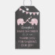 Adorable allure de tableau, baby shower invité faveur remercient tag cadeau en rose et blanc. Un arrière - plan de tableau noir avec de mignons éléphants roses jumeaux. Personnalisé avec le nom de la future mère, la date du baby shower et "merci de partager notre joie". Le dos de l'étiquette cadeau, a des empreintes de bébé et les mots "fait avec amour". Parfait pour un bébé jumeaux "Baby shower à thème éléphant". Ajouter les produits correspondants. Visitez "La princesse hongroise - une boutique" @zazzle.com/hungaricanprincess*. Regardez dans la catégorie "Baby". Félicitations.