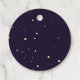Merci privilégier les étiquettes avec un arrière - plan bleu foncé avec des étoiles jaunes éparpillées autour. Couché sur le dessus est l'illustration d'un astronaute vêtu d'une combinaison blanche flottant au-dessus de la lune. Au loin se trouve une planète avec des anneaux et un vaisseau-fusée qui s'envole dans le ciel à la recherche de nouveaux mondes à explorer.