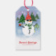 Ajoutez de la personnalité à vos cadeaux avec cette étiquette cadeau qui met en vedette le bonhomme de neige festif tenant le mistletoe et un ornement étoilé. Le texte modifiable vous permet d'ajouter des noms, des salutations ou des messages courts dans une police ludique qui complète la conception joyeuse. Idéal pour des cadeaux de vacances rustiques, Noël verdoyant et des cartes classiques modernes de bonhomme de neige. Paire magnifiquement avec le papier d'emballage et les sacs assortis.
