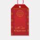 Papier asiatique d'or coupé d'un Dragon avec un motif traditionnel rouge comme arrière - plan + souhaits d'or en vietnamien. Conception sur étiquette cadeau avec message pour personnaliser à l'arrière. Parfait pour le Nouvel An Vietnamien du Dragon 2024.