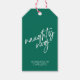Dark Green typographie naughty nog eggnog étiquette avec nom et branche de pin motif retour.